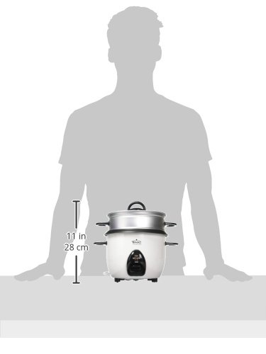 Measuring cup and rice ladle included; wash by hand