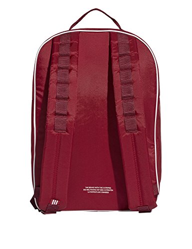 Studio : adidas originals Publisher : adidas originals Binding : Sports Product Description Classic unisex backpack by Adidas Originals in burgundy color with white detailings and logo on the front. It has external pocket, zip closure, adjustable shoulder straps and top handle. Ideal for gym, school or your daily walks in the city.
