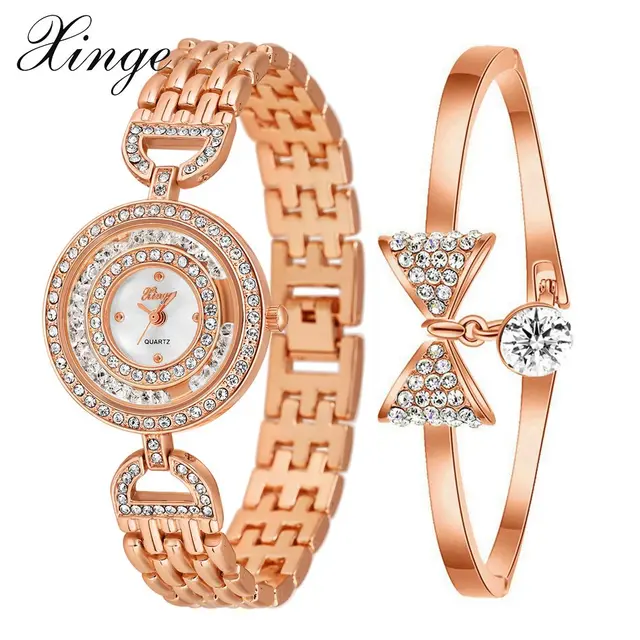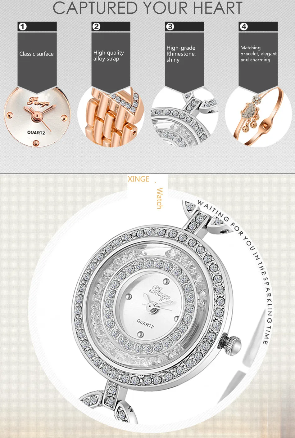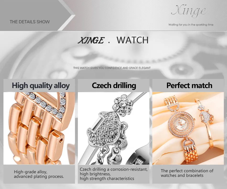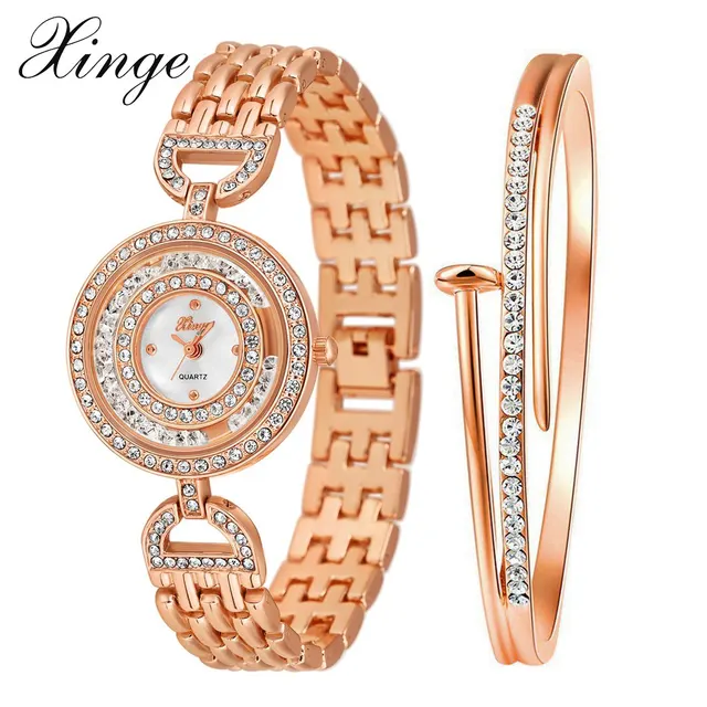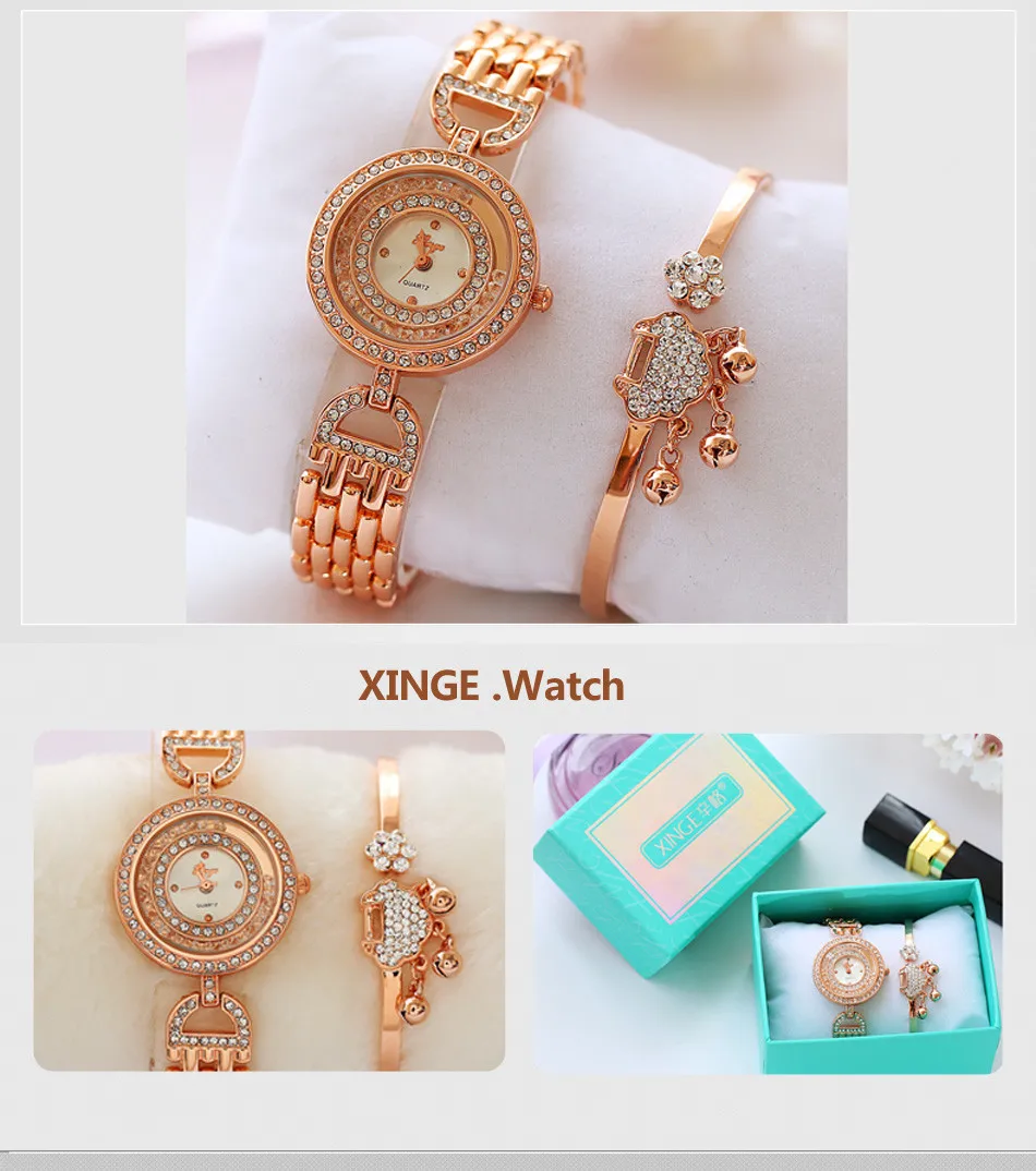 | [해외] Xinge 브랜드 시계 세트 드레스 보석 팔찌 여성 캐주얼 석영 손목 유명한 럭셔리 여성 패션 팔찌 장미 시계 |