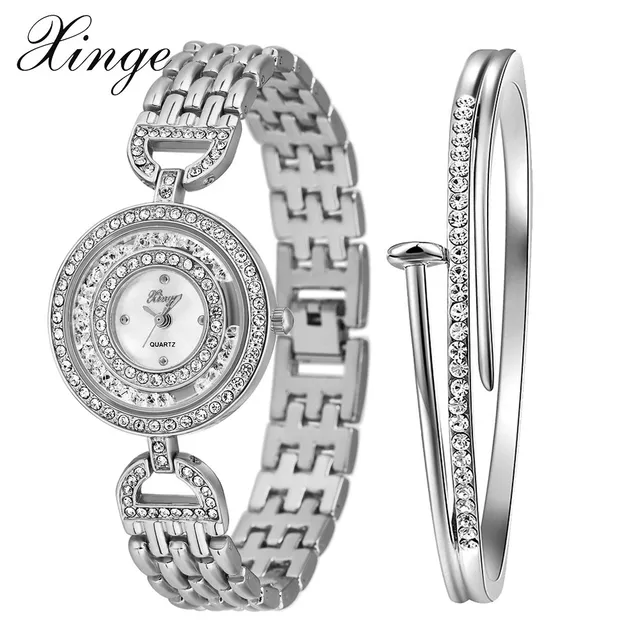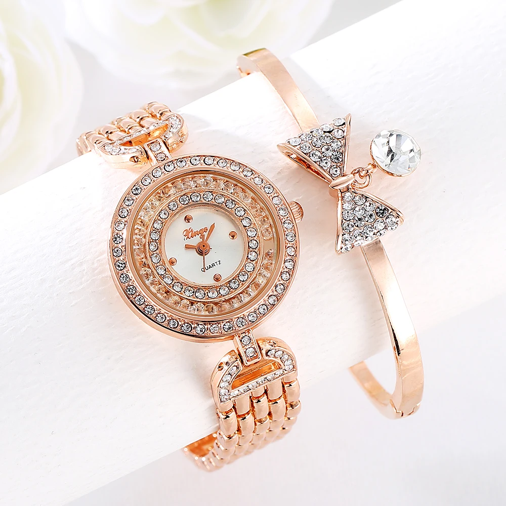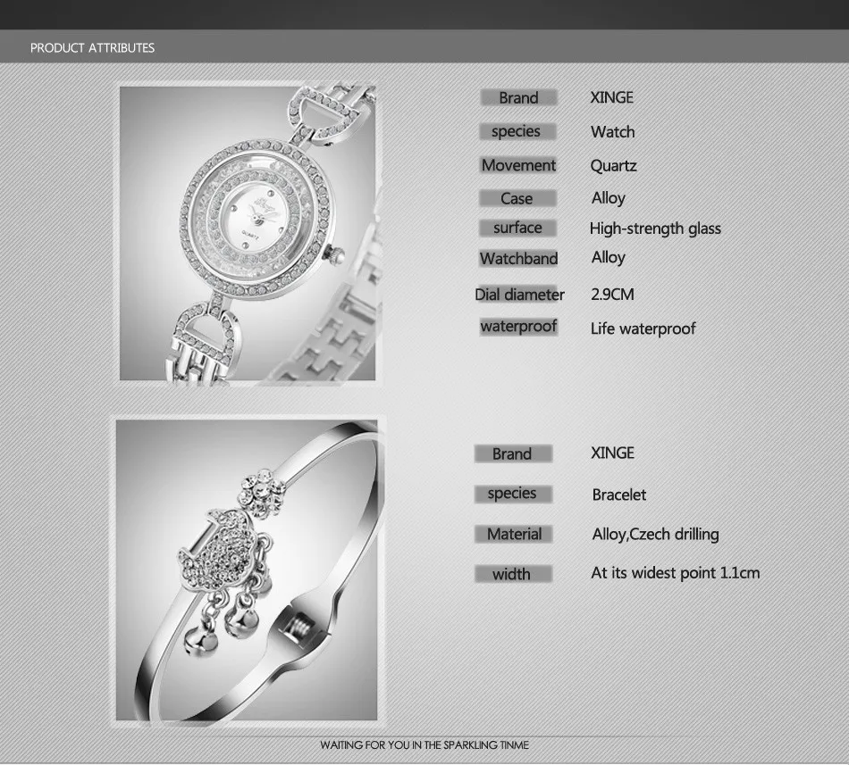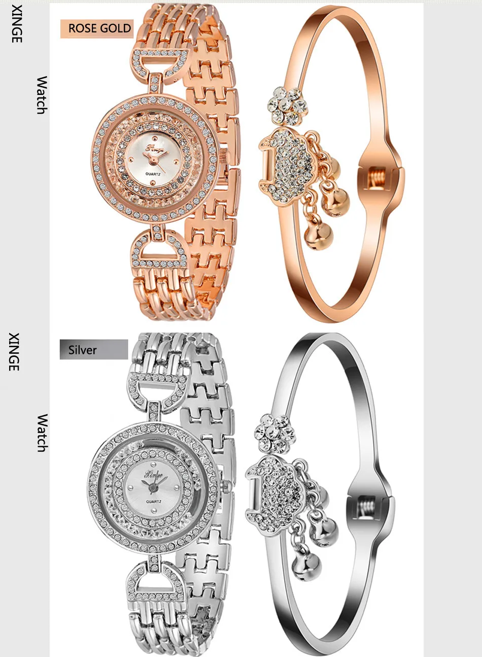 | [해외] Xinge 브랜드 시계 세트 드레스 보석 팔찌 여성 캐주얼 석영 손목 유명한 럭셔리 여성 패션 팔찌 장미 시계 |