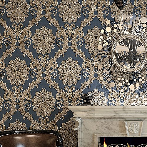 -. Title : Blooming Wall R0307 Non-woven Vintage Blue French Damask Textured Wallpaper Roll Wall Paper for Livingroom Bedroom 20.8" x 393.7"