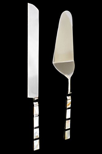 Product Description Stainless Steel Cake Knife Server; Elegant Natural Mother Of Pearl inlay Handles; Gift Boxed; Great Set for Wedding Cakes; Approximate Dimensions: Server: 11" x 2 1/2" , Knife: 11 1/2" x 1" 0