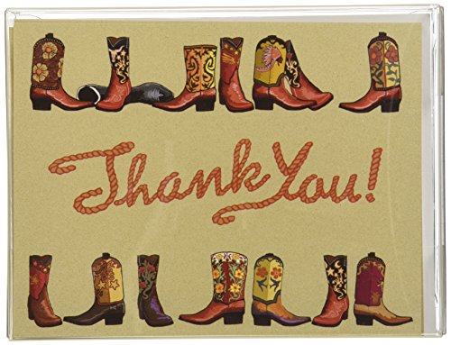 18 Boxed Cowboy Boots Western Thank You Card - Folded 4.25x5.5 Note Cards