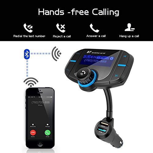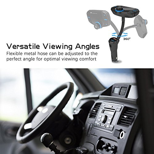 High Performance Support A2DP, achieve the stereo music lossless transfer to your car speaker. Built-in microphone feature can offers your hands free talking and wonderful music. Charging Station With dual USB port, charging two of your mobile devices at the same time. Easy Installation Plug and play, Easy to use. Goose Neck Design Flexible metal hose, convenient to adjust its direction. Specifications: Bluetooth Bluetooth vision: V4.2 + EDR Bluetooth frequency:2.4GHZ Sensitivity:-42db + / 3db 360 Voltage:5V +/- 0.5 Working current:75mA(MAX) Standby current:20mA(MAX) Effective range:5M Sensitivity:-92 dBm RF output:4 dBm Color: Black Package include: 1 * Car Bluetooth FM Transmitter 1 * User Manual 1 * Audio Cable 1 * 3A Fuse Note: • To cancel static noise. It's worth taking time to tune car radio to a vacant or non-interfered frequency (87.5 MHz-108.0 MHz according local FM condition), then sync device to the same frequency. • To achieve best audio quality, please set the volume on your phone to maximum then adjust the volume for car stereo