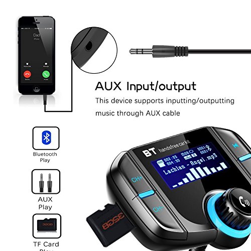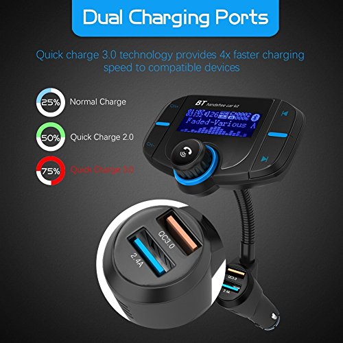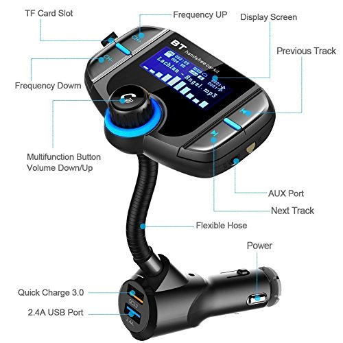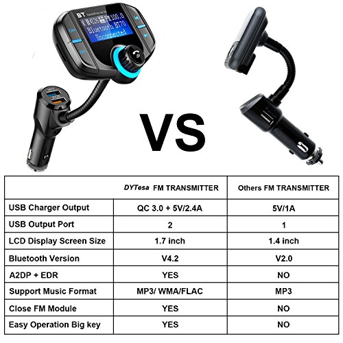 Bluetooth FM Transmitter for Car, DYTesa Wireless In-Car FM Transmitter Radio Adapter Car Kit with AUX Input/ Output,1.7 Inch Display,Quick Charge(QC) 3.0 and Smart 2.4A Dual USB Ports, TF Card (BT70)