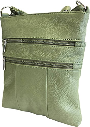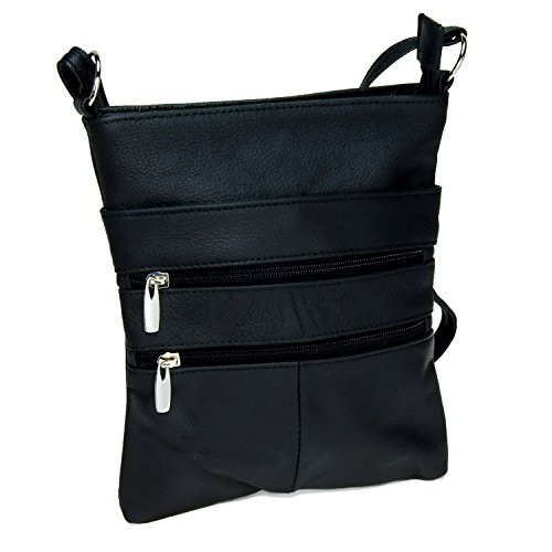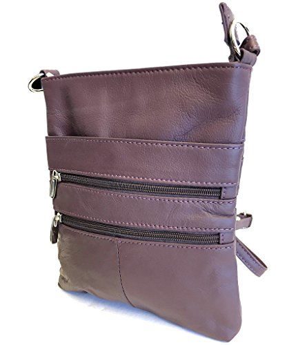 Great crossbody purse, classy genuine leather that will hold all of your items both inside and out. 4 zipper pockets on the outside (two in front and two in back) with a large inside pouch. Handbag measures 8 inches wide and 9 inches high with adjustable strap. All pockets are fully lined for easy cleaning.Feature