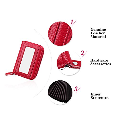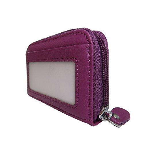 UniLife Women’s Genuine Leather Secure RFID Blocking Credit Card Holder Spacious Zipper Wallet ...