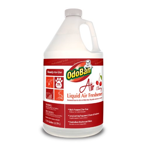 OdoBan Air Cherry Liquid Air Freshener is a ready-to-use water soluble odor neutralizer. Refreshes the air by removing unpleasant odors. Also may be diluted for use on carpet, upholstery and hard floors. Safely and effectively removes odors from: pets, tobacco smoke, cooking, mustiness and mildew while leaving a clean, fresh, long-lasting scent.