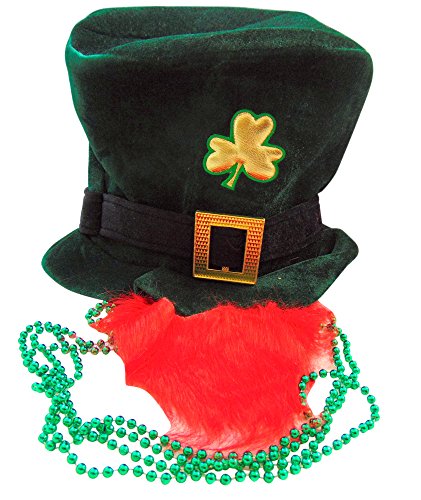 St Patrick's Day Men's Party Accessory Set Hat with Red Beard and Beads