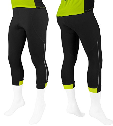 -. Feature : Soft, slightly fleecy cycling capri / Reflective trim and optional color accents / Adult Sizes: X-Small (size 0-2, hips 32-35, inseam 19); Small (size 4-6, hips 35-37, inseam 19.25); Medium (size 8-10, hips 38-39, inseam 19.5); Large (size 12, hips 40-42, inseam 19.75); X-Large (size 14-16, hips 43-44, inseam 20); XX-Large (size 18-20, hips 45-48, inseam 20.25); 3XL (size 22-24, hips 51-53, inseam 20.5); 4XL (size 26-28, hips 55-57, inseam 21); 5XL (size 32-34, hips 60-64, inseam 22) / Italian-made chamois pad to provide support and prevent chafing; designed with medium density foam for moderate distance rides / Made in the USA, also available in an unpadded compression version and in men's sizes