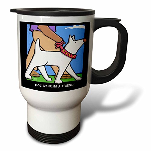 3dRose Dog Walking a Friend, Cartoon Dogs, Stainless Steel Travel Mug, 14-Oz