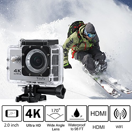 - 【4K Ultra HD Action Camera】it enables you to take superior high quality videos and photographs. Along with a 170° ultra wide angle and 2" Display LCD, you can catch more amazing moment of your surroundings, offering good opportunities for you to share your excellent life with your family and friends.