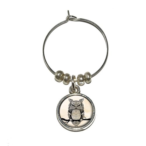 -. Brand : Graphics and More -. EAN : 0719926504621 -. Feature : Unique and functional super awesome wine/drink charm / Includes the urethane encased design on both sides of the metal charm / Approximate size of charm is 15mm / Charm is sold individually / Sorry, wine is not included. :-) -. Label : Graphics and More -. Manufacturer : Graphics and More -. MPN : CHARM_WINE_7310 -. PackageQuantity : 1 -. PartNumber : CHARM_WINE_7310 -. ProductGroup : Kitchen -. ProductTypeName : KITCHEN -. Publisher : Graphics and More -. Studio : Graphics and More -. Title : Owl Perched on Tree Branch - Antique Rustic Tribal Bird Wine Glass Charm Drink Stem Marker Ring -. UPC : 719926504621