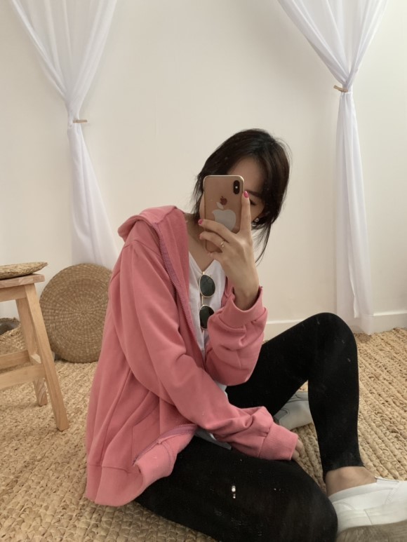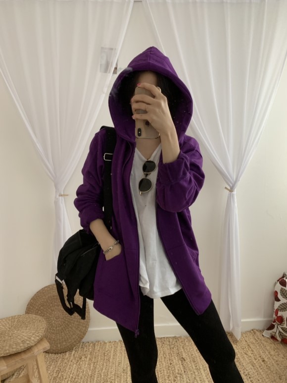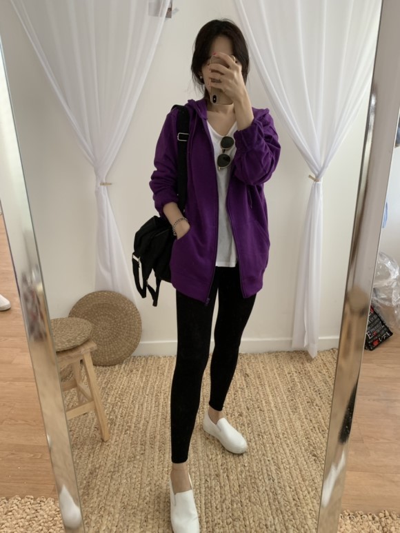쭈리면 소재의 봄신상으로 나온 후드 집업이에요 남녀공용으로 나와서 사이즈 넉넉하구요 아우터로 입으셔도 이쁘고 겨울에는 점퍼 안에 레이어드해서 입으셔도 이뻐요 이제 봄날씨가 낮에 찾아와서 너무 반갑죠 저는 이너로 긴 티 입고 레깅스룩으로 연출해봤어용 후드집업이 엉덩이 덮어주는 기장감이라서 더 편하게 활용도가 좋은거같아용 색감도 모두 비비드하게 이쁘답니다^^