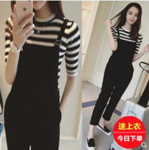 サロペット 2ピース セットコーデ ボーダートップス サスペンダー ロングパンツ カジュアル 大人カジュアル プチプラ