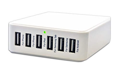Ionic 6-Port USB Hub for new Apple iPad Air 2/iPad Mini 3/ iPhone 6/ iPhone 6 Plus/ Samsung Galaxy Note 4/ Samsung Galaxy S5/ Amazon Fire Phone/Samsung Galaxy Tab S/LG G3/ Galaxy Tab 4 7.0 8.0 10.1 Galaxy TabPro/ Galaxy NotePro 12.2 /Apple iPad 5 iPad Air/ iPad Mini/ iPad Mini 2/ iPhone 5/ iPhone 5S/ iPhone 5C / Kindle Fire (White)