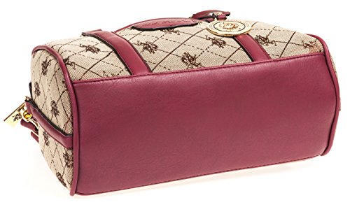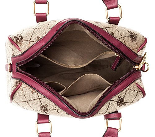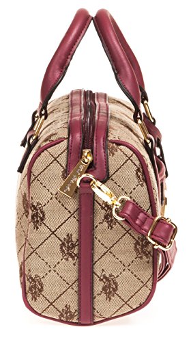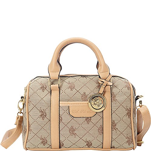 Impress everyone with your exclusive sense of style by taking the US Polo Logo Jacquard Mini-sized Women's Satchel Bag for weekend brunches. Styled with multiple zipped compartments and a slip pocket in front, this satchel bag is comfortable to carry due to the rolled handles provided on top. It is also bedecked with the brand's print throughout the design. Features: Polyester construction Slip pocket in front accented with brand's logo Brand medallion accented Faux leather and gold-toned hardware detailing Ships immediately, 100% Satisfaction guarantee, no questions asked Return policy, and Customer Service is our top priorityFeature