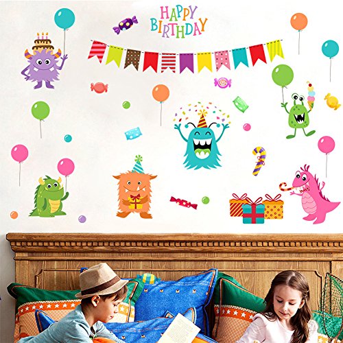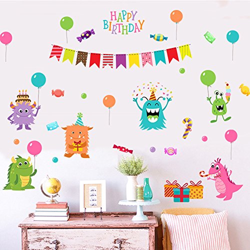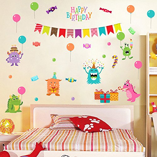 -. Title : Wallpark Cartoon Little Monster "Happy Birthday" Gifts Balloon Removable Wall Sticker Decal, Children Kids Baby Home Room Nursery DIY Decorative Adhesive Art Wall Mural