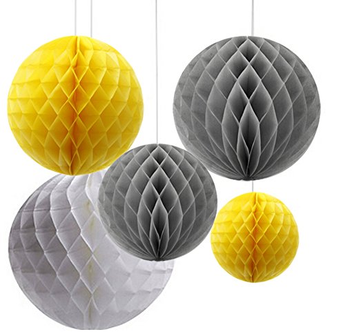 - Material:Tissue Paper. Pack of 6 including 2 Of each grey, yellow, white. Size:approx.8" Diameter