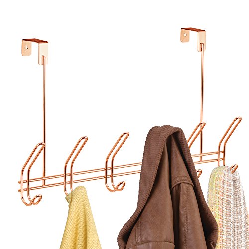 InterDesign Classico Over Door Storage Rack - Organizer Hooks for Coats, Hats, Robes, Clothes or Towels – 6 Dual Hooks, Copper