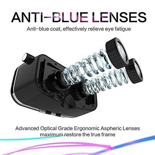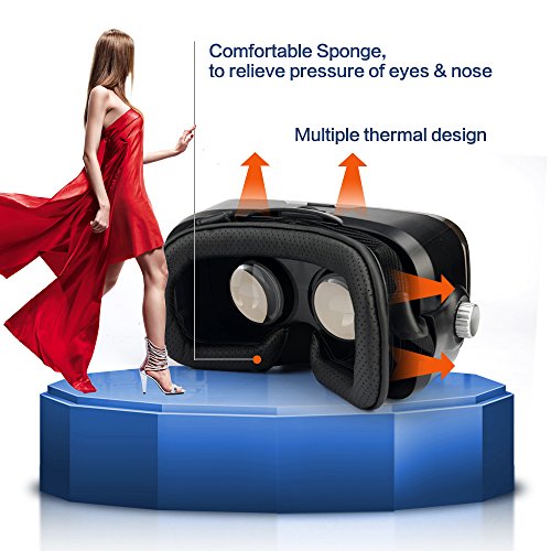 -. Feature : Real 3D VR Viewer: Fully Immersive 120-Degree Bigger Viewing Angle Fit for Regular 4.5-6.2 Inches Large Screen Smartphones. ETVR has been imitated but never been beyond / Innovative Design ahead of other VR Headsets, MORE LIGHTER & MORE COMFORTABLE, quality adjustable straps for flexible wearing and deepened nasal bridge portion, no painning noses, provide you longer virtual reality experience / FAST & EASY Focus Lenses: Built-in Japan Optical Grade PMMA Ergonomic Aspheric Anti-blue Lenses, more closer to the human eye, 1 BUTTON Easy and Precise Adjustment, no dizzy and eyestrain for your longer viewing or game playing compares to the flat lens in old VR Version / Users & Smartphones Friendly Tight Hook Style External Cover Design, black metal stand for smartphones holding and Soft Anti-slide Rubber Pads inside , multiple way for your phone protection / Best Value Guaranteed: This VR Goggles comes with a Bluetooth Remote Controller for Convenient Use when playing VR Games, Videos,etc...So Click Add To Cart Now! Begin to experience new world!
