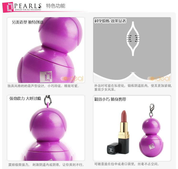 葫芦状的可爱造型,使它在进入体内时拥有多个刺激点。上下双球同时按摩,将带来双重快感。