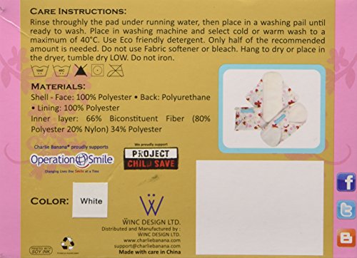 Charlie Banana Washable Reusable Super Feminine Menstrual Pads - 3 Pack (White)
