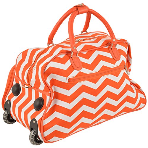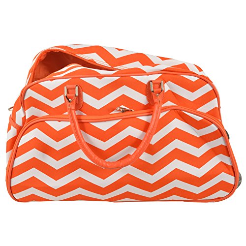 -. Brand : OS -. Color : Orange, White -. Department : Unisex -. EAN : 0768421494524 -. Feature : Orange White Lightweight Rolling Duffle Bag Chevron Pattern Polyester Material / Perk up your travel plans with this versatile carry-on rolling duffel bag. The in-line skate wheels on the bottom of this bag make it easy to travel between gates without the back strain. The carry-on strap gives you the option of easy lifting and adjusts for a comfortable fit. Set Include: One(1) Duffel Bag / Material: Polyester / Dimensions: Measures 12 inches high x 11 inches wide x 22 inches deep / **ITEM INCLUDES Exclusive DIAMOND HOME EBOOK** -. ProductGroup : Apparel -. ProductTypeName : LAGE -. Size : 22-inch -. Title : Orange White Lightweight Rolling Duffle Bag Chevron Pattern Polyester Material -. UPC : 768421494524