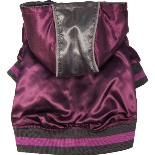 -. Feature : Metallic hoodie is fall and winter 2011 small dog clothing collection / Shiny metallic purple hoodle with reflective accents / Medium size recommended for medium-sized dogs such as pomerianians, maltese, toy poodles / This product weight is 0.35-pound / Measures 2-inch length by 10-inch width by 15-inch height