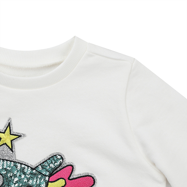 상세설명-기본 맨투맨티셔츠에 화려한 스팽글장식이 포인트가 되는 상품입니다.