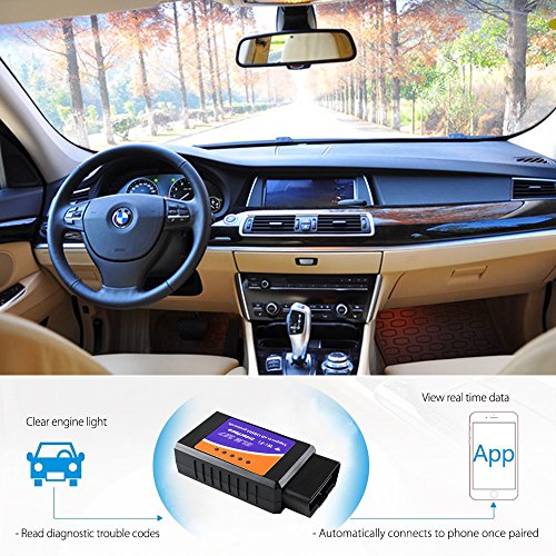 -. Feature : Excellent compatibility for almost car types: works on all 1996 and newer petrol cars sold in the United States, including all American, European, and Asian vehicles; some 1994 and 1995 models are also ok. Supports OBD-II protocols: ISO15765-4 (CAN), ISO14230-4 (KWP2000), ISO9141-2, J1850 VPW, J1850 PWM(May not support truck, van, Hybrid or electric vehicles). / Efficient read and clear trouble codes-diagnose your car: like a Pro and instantly transform your car into a smart car. This Higher quality scanner can read generic and manufacturer-specific trouble codes and its database includes over 3000 generic code definitions. Then you can see cars' status and know clearly when to maintain and repair. Protect your lovely car before harm occurs. / Smart Scanning: our OBD2 can display current sensor data, including Engine RPM, Calculated Load Value, Coolant Temperature, Fuel System Status, Vehicle Speed, Short Term Fuel Trim, Long Term Fuel Trim, Intake Manifold Pressure, Timing lights, Timing advance, Intake Air Temperature, Air Flow Rate, Absolute Throttle Position, Oxygen sensor voltages/associated short term fuel trims, Fuel System status, Fuel Pressure. / Easy connect via WIFI: unlike other bluetooth OBD scanners, this efficient car code reader OBD can connect to any device including IOS (iPhone, iPad, iTouch, Mac), Android and Windows smartphones or computer via Wi-Fi connection and you can diagnose any car problem and unlock massive amounts of data on your car's performance in real time. / Note: your vehicle may not support all above parameters.How many parameters you can get is depended on the vehicle manufacturer's implementation.