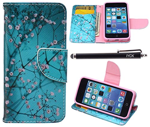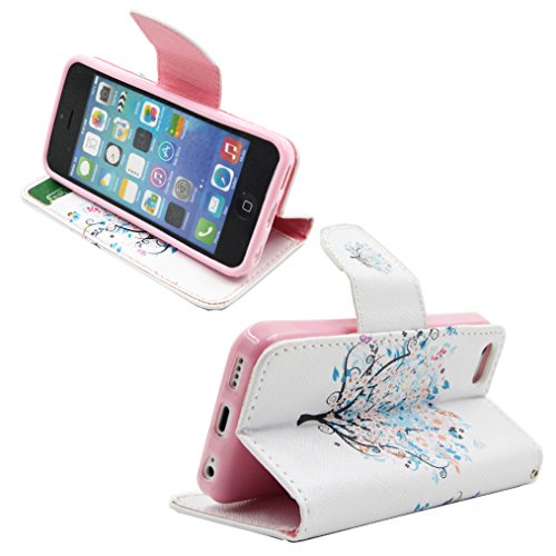 iPhone 5C Case, iPhone 5C Case Wallet, iYCK Premium PU Leather Flip Carrying Magnetic Closure Protective Shell Wallet Case Cover for iPhone 5C with Kickstand Stand - Butterfly Floral Tree