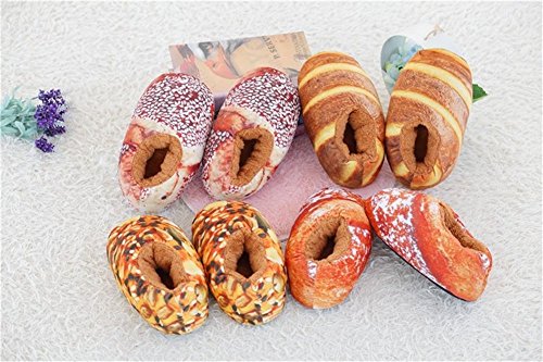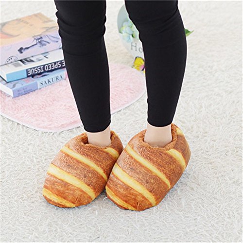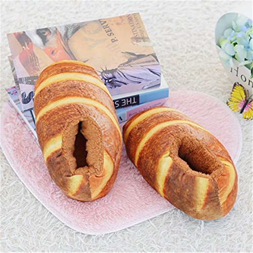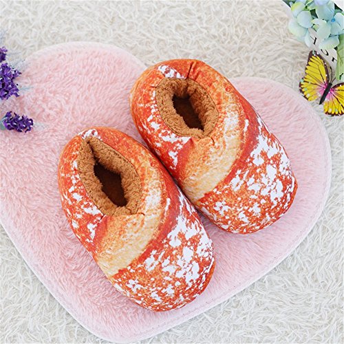 Product Description Aimeely Funny Warm Winter Simulated Bread Slippers Soft Plush Indoor Floor Slipper Material:High quality plush One size suitable for most women which size is US5-US8. Funny unique design,also can keep your heel warm. Exquisite workmanship,Fashion style,Soft to touch Very light and comfortable to wear. Perfect for you to wear at home or other places in this cold winter. 0