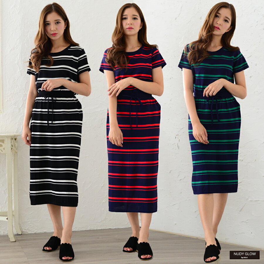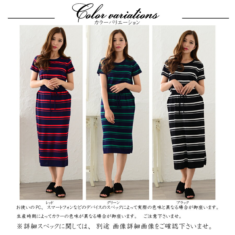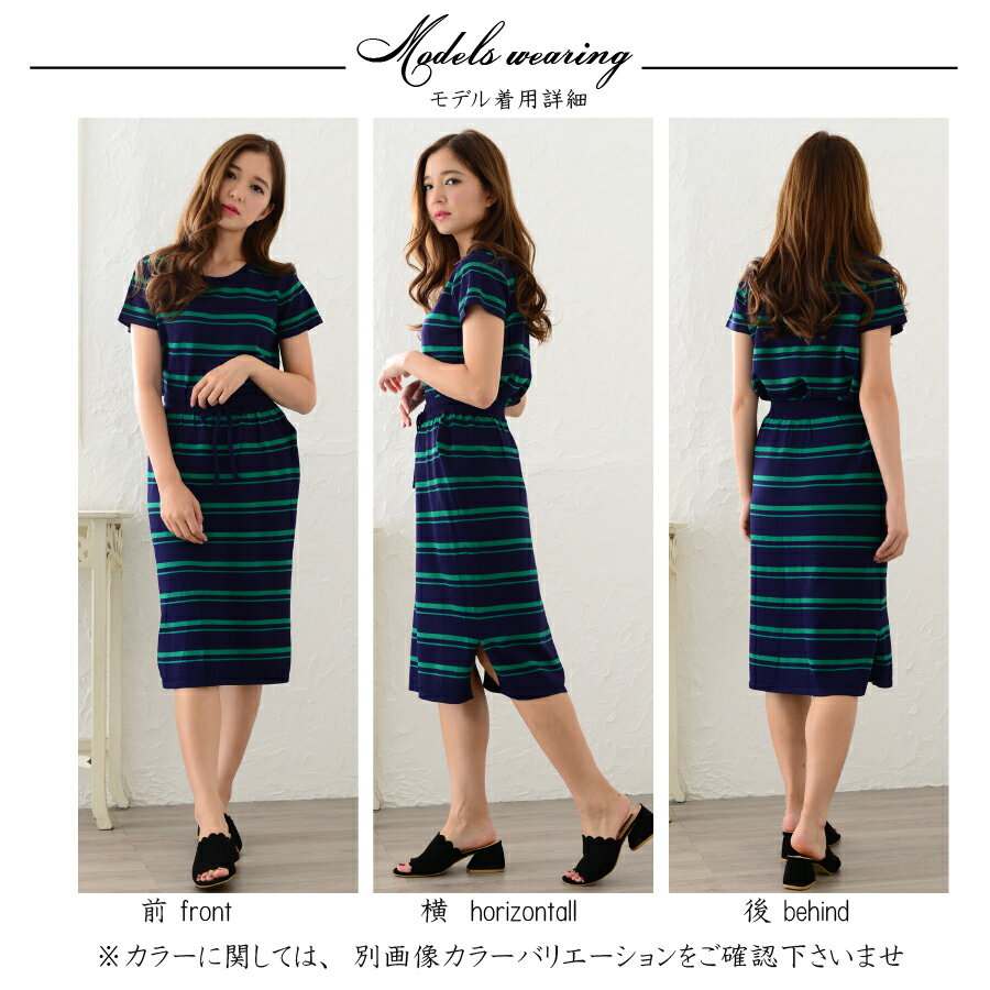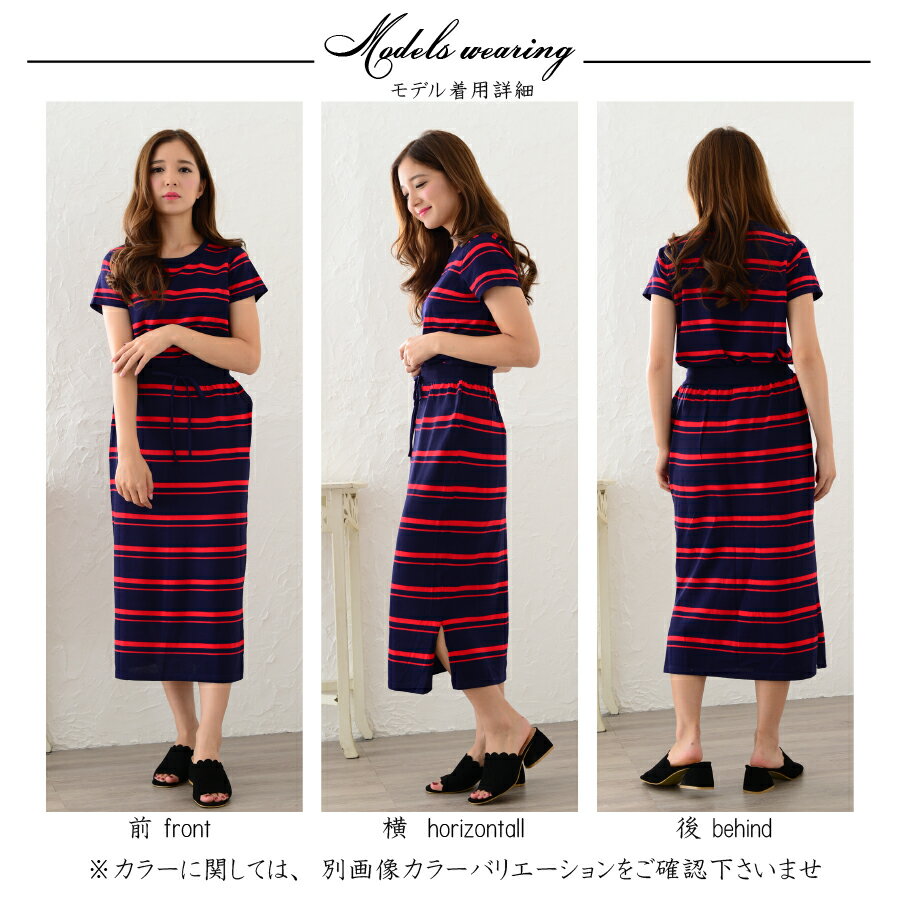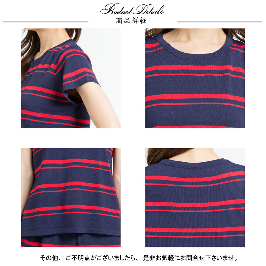 落ち着いた配色のボーダー柄です。ボトムはウエストがゴムなので着脱がラクチンです。