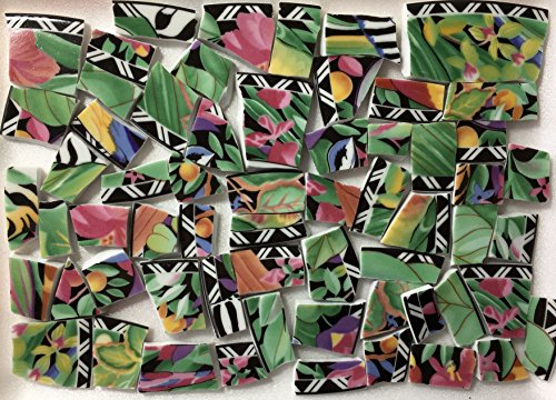 MOSAIC TILE ~ HAND CUT Dish China / Ceramic Pieces ~ Supply for Mosaics Arts & Crafts ~ China Tiles with Jungle Animals Flowers and Leaves (T#298)