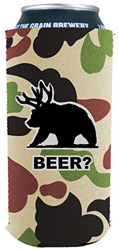 Coolie Junction Beer Bear Funny 16 oz. Can Coolie (Camo)