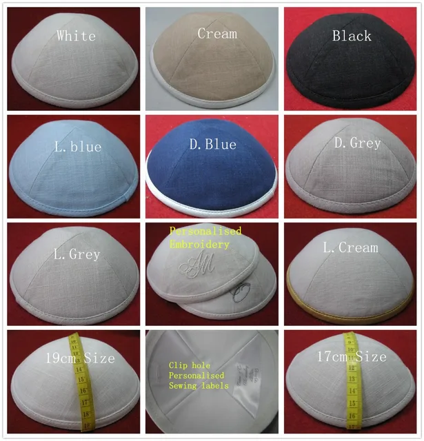 상품 내용 디럭스 린넨 유태인 Yarmulkes kippah Kippot 두개골 캡 사용자 정의 주문 밑에 문의 개인 축복, 성경 문구가 이미지 및 로고 자수 외부 , 웨딩, 박쥐 또는 바 미츠 또는 다른 전자벤트 사용 Kippah 크기 선택: D17cm & D19cm 린넨 kippot 고품질 리넨 패브릭 및 지어 편안한 능. 네 패널 kippah, 내부 클립 버튼 구멍