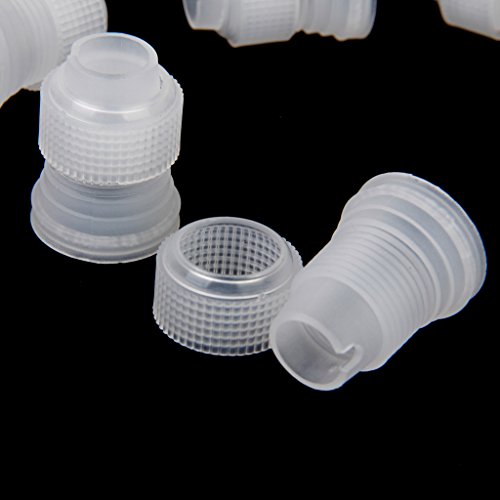 100%Brand new and high quality Great for use with larger tips.Can be used between re-eseable piping bags/disposable bags and nozzles Total length: Approx. 32mm/1.26inch Diameter for connecting piping bag: Approx. 22mm/0.87inch Diameter for connecting nozzle: Approx. 12mm/0.47inch Color: Clear