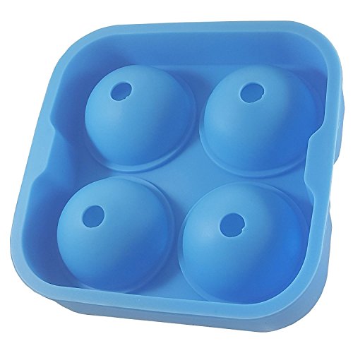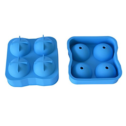 Omylife Ice Ball Maker Mold Flexible Silicone Ice Tray Molds 4 X 2in Round Ice Ball Spheres Kitchen Basic Blue