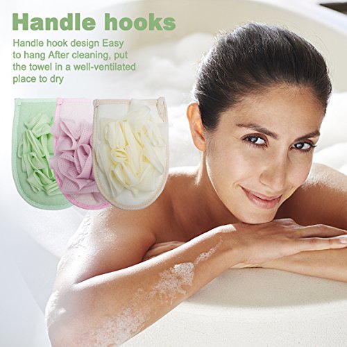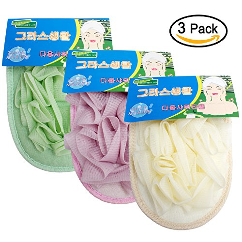 -. Title : Amariver 3 Pack Bath Mitt Loofah Sponge Brushes Pouf Bath Mesh Brush Bath Shower Glove with flower Bath Ball