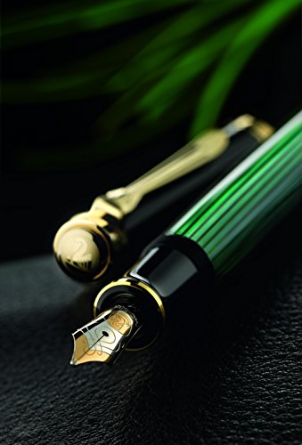 -. Binding : Office Product -. Brand : Pelikan -. Color : Black/Green GT -. EAN : 4012700987594 -. Feature : Piston filler including a 24 carat gold plating and an elaborately striped body made of celluloid acetate. / The nib of the Souverän piston filler M1000 is made of 18 carat/750 gold. / All nibs are refined with a rhodium decor and their writing qualities were tested by hand. / The fountain pens are equipped with a differential piston-filling mechanism, of which is elaborated with high-value brazen components on the model M1000. / Comes in an elegant Pelikan Gift Box. -. Label : Pelikan -. Manufacturer : Pelikan -. Model : 987594 -. MPN : 987594 -. NumberOfItems : 1 -. PackageQuantity : 1 -. PartNumber : 987594 -. ProductGroup : Office Product -. ProductTypeName : WRITING_INSTRUMENT -. Publisher : Pelikan -. Size : Medium -. SKU : juritan-0017486676-1844 -. Studio : Pelikan -. Title : Pelikan Souveran 1000 Fountain Pen Green Medium