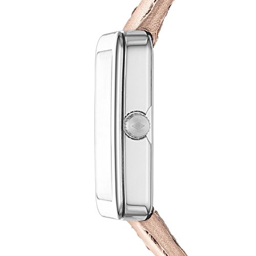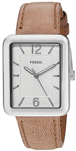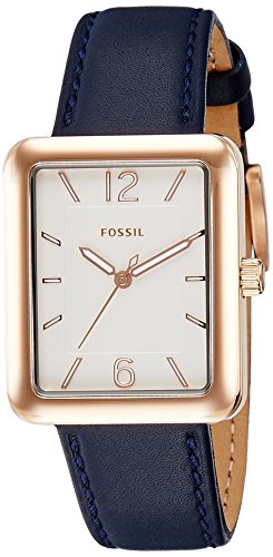 Watch Sizing Guide Keep your look pristine with this watch from Fossil®! Stainless steel case. Leather strap with buckle closure. Tank face. Three-hand analog display with quartz movement. White dial features rose gold-tone hands, hour markers, and Fossil detailing. Water resistant 5 ATM. Display case included. Imported. Measurements: Case Height: 34 mm Case Width: 34 mm Case Depth: 8 mm Band Width: 3⁄4 in Band Circumference/Length: 8 in Weight: 1 oz This product may have a manufacturer's warranty. Please visit the manufacturer's website or contact us at warranty@support.zappos.com for full manufacturer warranty details.Feature
