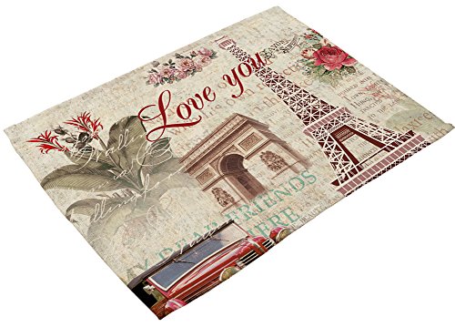 -. Title : YJ Bear Beautiful Eiffel Tower P.R.Inted Cotton Linen Placemats for Kitchen Washable Table Mats Non-slip Heat Insulation Dining Table Mats for Teacups Table Runner 16.5" X 12.6"