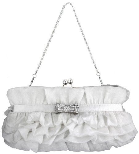 - Title : MG Collection White Princess Ruffle Rhinestone Bow Clutch Baguette Evening Bag