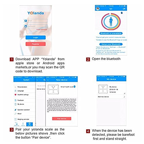 Smart Design - Made of high quality impact-resistant tempered glass that is 4 times stronger than common glass. In combination with the accompanying mobile application, utilizes advanced algorithms to instantly calculate Body Weight, Body Water, Body Fat, BMI, BMR, Muscle Mass, Bone Mass and Visceral Fat.