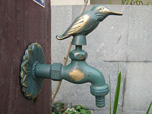 Greenspring Bird Decorative Solid Brass Garden Outdoor Faucet - With a Set of Brass Quick Connecter for 1/2 Inches Hose