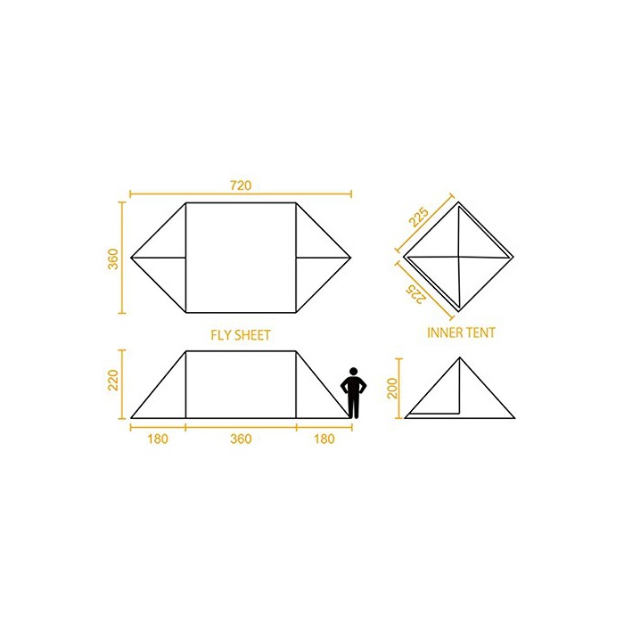외프레임에 의해 널찍한 실내 공간을 실현.이너 텐트(1개)표준 장비의 크로스 프레임 대피소