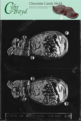 Cybrtrayd Life of the Party E431 Happy Easter with Bunny Hollow Egg Chocolate Candy Mold in Sealed Protective Poly Bag Imprinted with Copyrighted Cybrtrayd Molding Instructions