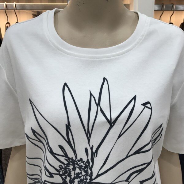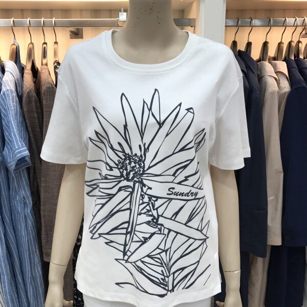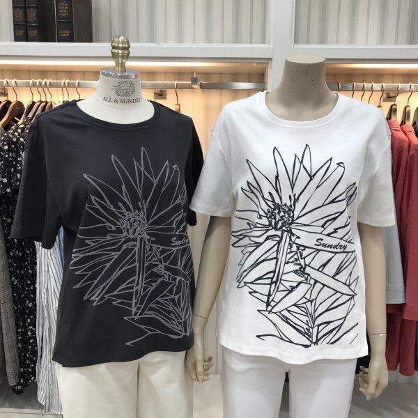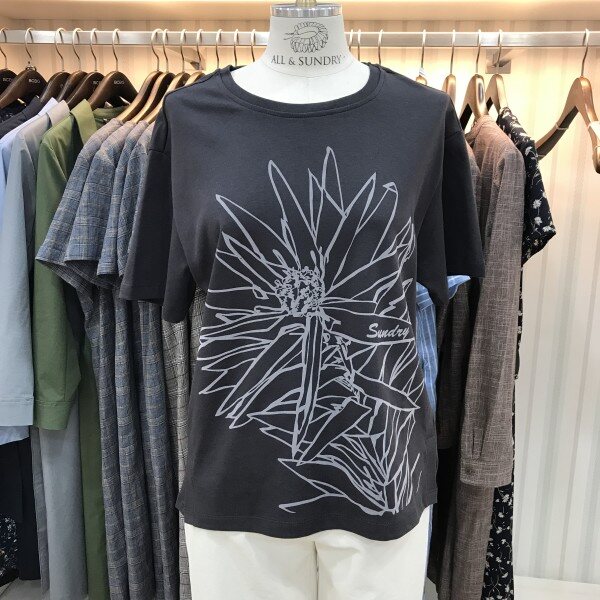 데일리로 입기 좋은 라운드넥 면티셔츠입니다. 썬플라워 프린팅이 포인트로 들어가있으며, 부드럽고 톡톡한 면이라 착용감도 너무나 좋답니다. 총장길이는 55사이즈 기준으로 59.5cm입니다.