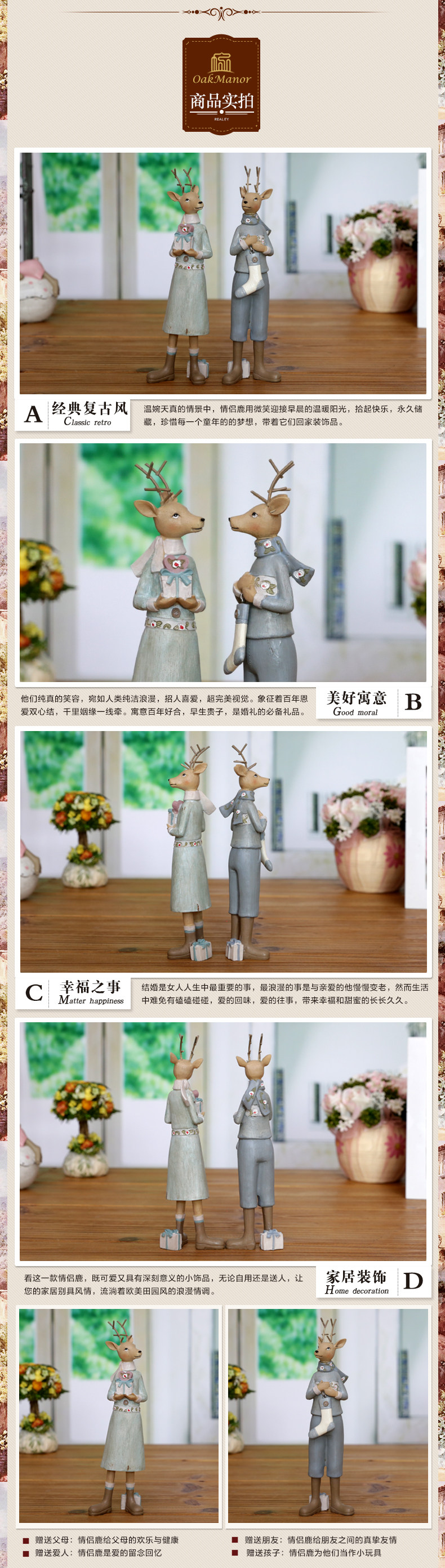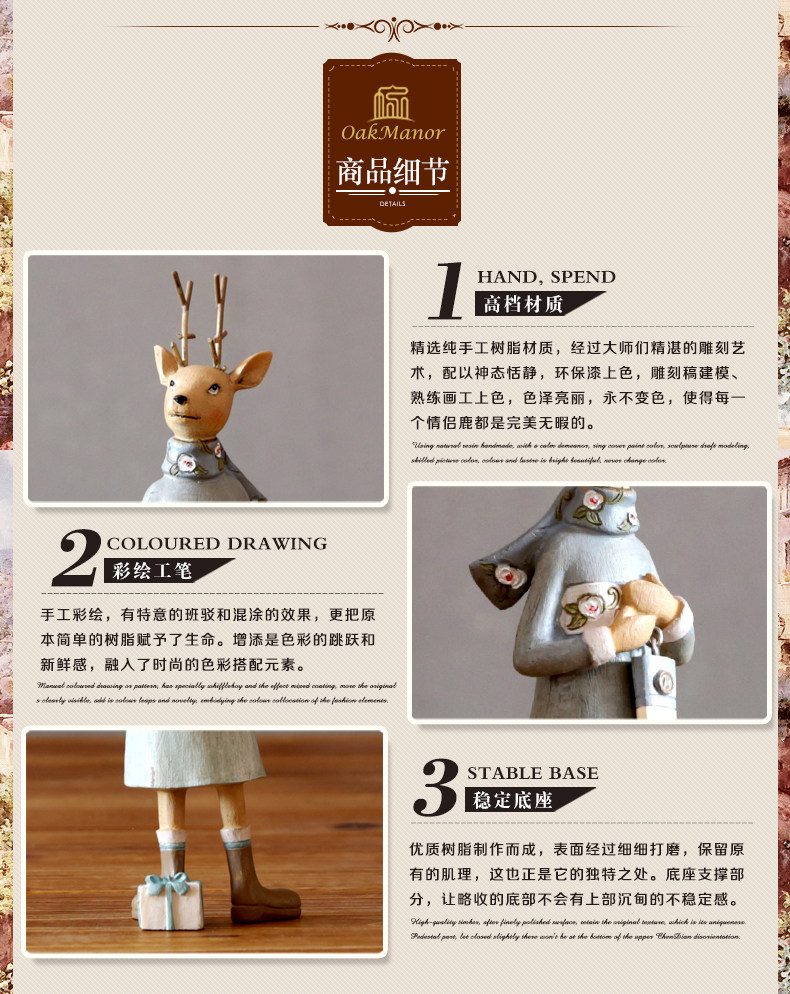 树庄园 美式田园情侣麋鹿摆件 童话王国高档家居装饰两件套装